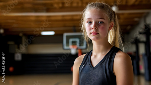 © Bird Visual, Fototapeta premium portrait of a teenage female Basketball player in gym