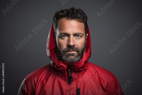 Fototapeta premium Portrait of a tender man in his 40s wearing a windproof softshell isolated on...
