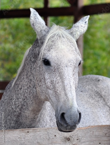 Obraz premium Portrait of a terek stalllio looking from the levada