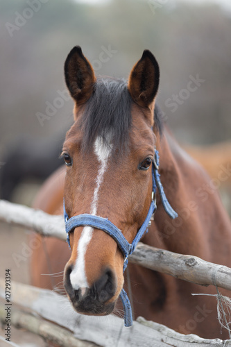 Fototapeta premium Portrait of a thoroughbred horse close up in nature.