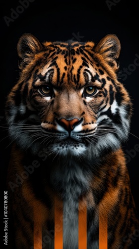 Obraz premium Portrait of a Tiger Staring Intently with Dark Background