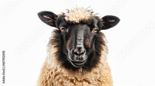 Fototapeta premium Portrait of a two year old female Suffolk sheep against a white backdrop
