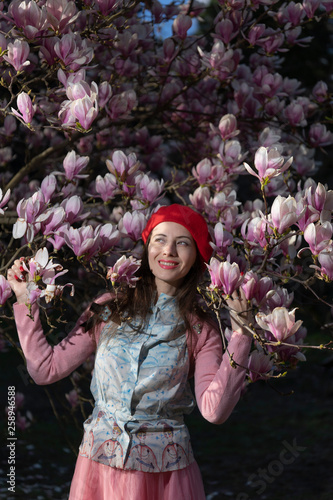 © Aleksandr, Fototapeta premium Portrait of a vintage girl in a spring garden
