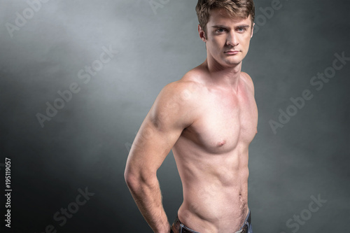 Fototapeta premium Portrait of a well built shirtless muscular male model