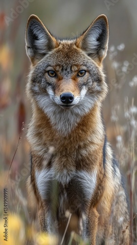 Naklejka premium Portrait of a wild animal in a natural environment, focusing on its gaze. Suitable for articles about nature, ecology, wild fauna.