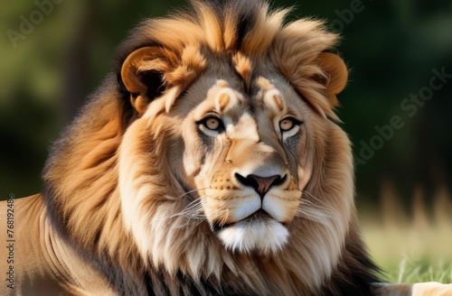 Fototapeta premium Portrait of a wild lion in natural conditions.