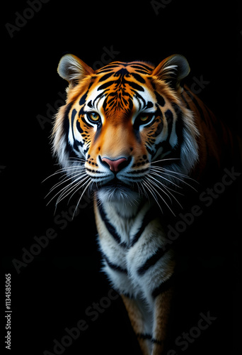 Fototapeta premium Portrait of a withe tiger with a black background, Diffused lighting, with white tones