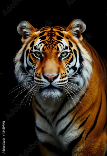 © Go, Fototapeta premium Portrait of a withe tiger with a black background, realistic, with white tones