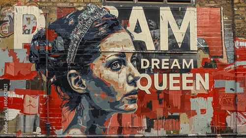 Fototapeta premium Portrait of a woman, DREAM QUEEN, Graffiti on the streets of London Town,...