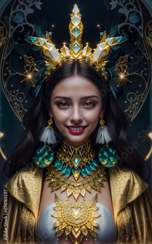 © Yaroslav Idmental, Fototapeta premium portrait of a woman flowers outfit