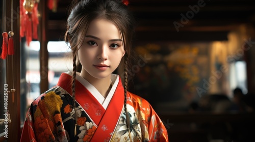 © Ghulam, Fototapeta premium portrait of a woman in a red dress HD 8K wallpaper Stock Photographic Image