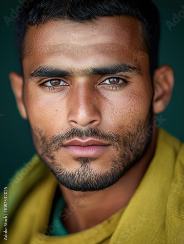 Obraz premium Portrait of a young Afghan man with a beard with a thoughtful expression,...