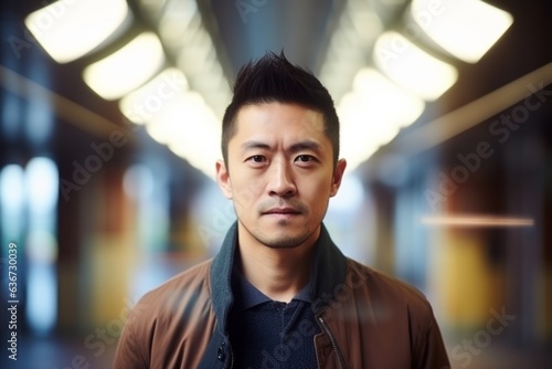 Fototapeta premium Portrait of a young asian man looking at camera in corridor