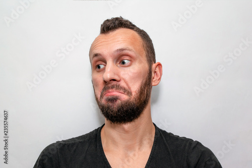 © Sergey, Fototapeta premium portrait of a young bearded guy with a surprised and astonished face