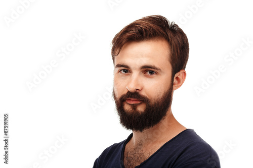 Obraz premium Portrait of a young bearded man isolated on white background