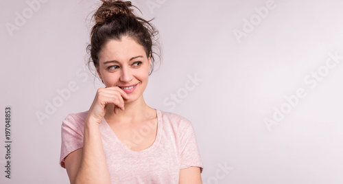 Fototapeta premium Portrait of a young beautiful woman in studio.
