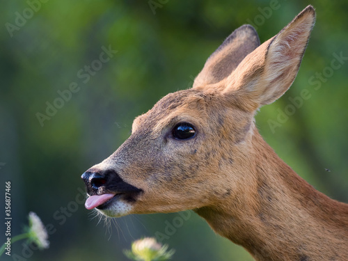 © PhotoVlk, Fototapeta premium portrait of a young deer,green background