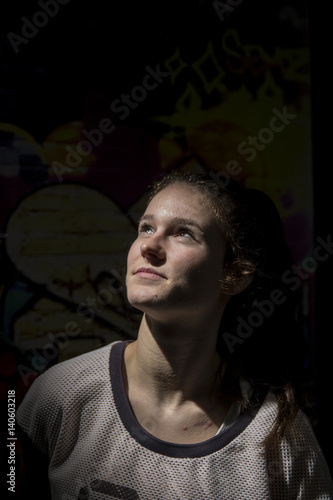 © henktennapel, Fototapeta premium Portrait of a young girl with long hair in summer clothes
