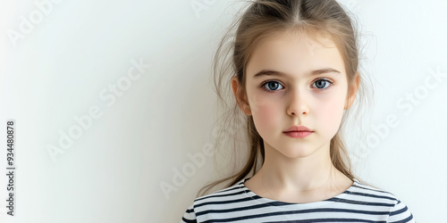 © HelgaQ, Fototapeta premium Portrait of a Young Girl with Striped Shirt and Thoughtful Expression Against Light Background