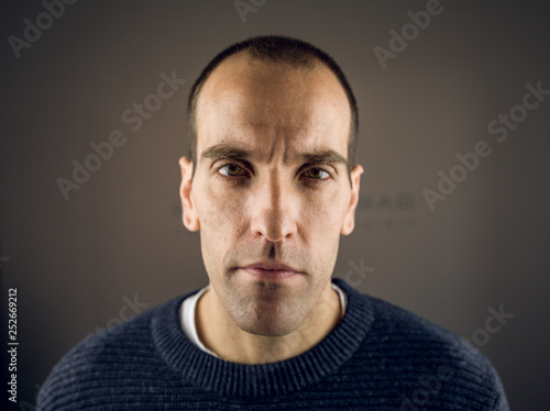 © Rafa, Obraz premium Portrait of a young man looking at the camera with serious expression