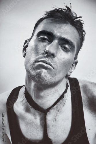 © korionov, Obraz premium Portrait of a young man with a metallic makeup