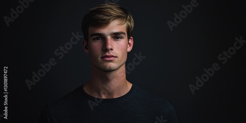 Fototapeta premium Portrait of a Young Man with Natural Lighting Against a Dark Background