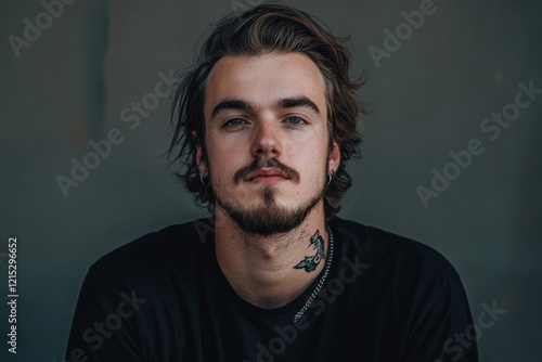 © J. Grayscale, Fototapeta premium Portrait of a Young Man with Tattoos and a Confident Expression in Natural Light