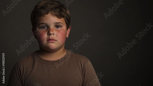 © Namwan, Naklejka premium Portrait of a Young Overweight Boy with Protruding Features