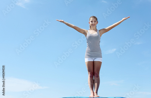 © Sergey Nivens, Obraz premium Portrait of a young woman doing exercises