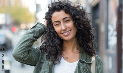 © Natalia, Fototapeta premium Portrait of a young woman smiling. AI.