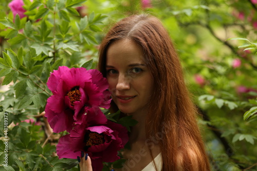 © Сергей Луговский, Fototapeta premium portrait of a young woman with purple flowers