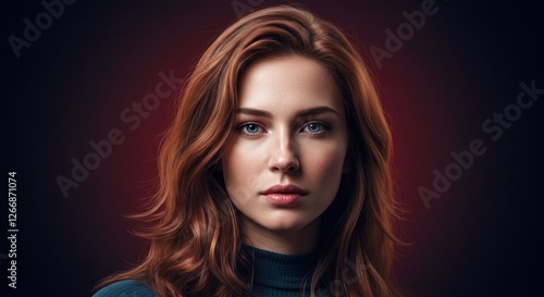 © Qstock, Fototapeta premium Portrait of a Young Woman with Red Hair Against Dark Background - Studio Photography Profile Picture