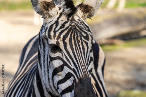 Naklejka premium Portrait of a zebra, scientific name Equus zebra from the front view