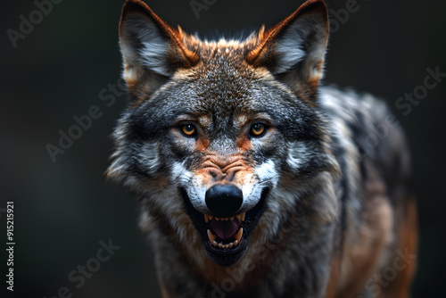 © Oksana_Latysheva, Obraz premium Portrait of adult wolf on black background