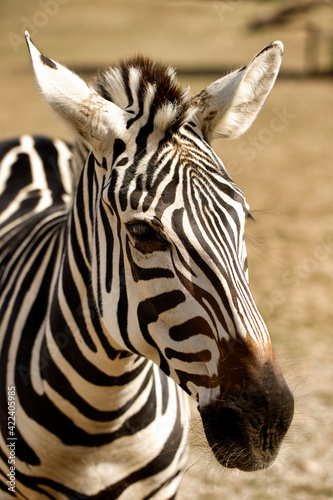 Naklejka premium Portrait of African striped coat zebra