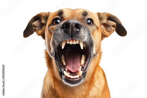 © Di Studio, Obraz premium portrait of aggressive barking dog with open mouth