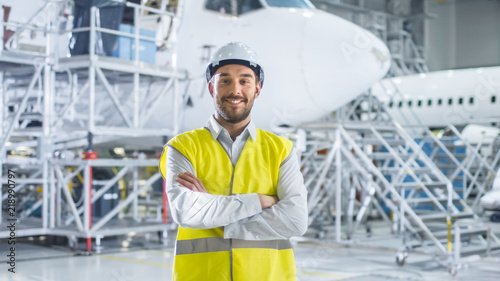 Naklejka premium Portrait of Aircraft Maintenance Mechanic in Safety Vest
