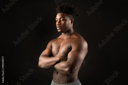 © Alexandr, Naklejka premium portrait of an african male with muscles on a black background