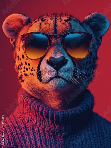 Fototapeta premium portrait of an anthropomorphic cheetah wearing sunglasses and a sweater
