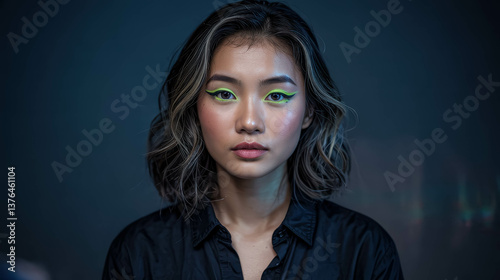 © Immersive Dimension, Fototapeta premium Portrait Of An Asian Woman With Green Eyeliner. Woman Fashion