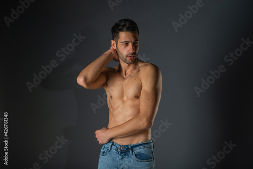 Fototapeta premium Portrait of an attractive stylish man posing against dark background