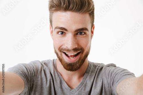 Obraz premium Portrait of an excited young bearded man