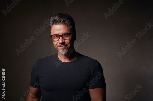 Naklejka premium Portrait of an older white guy dark background