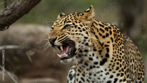 © Shahed Shoeb, Obraz premium Portrait of angry leopard roar in the deep jungle