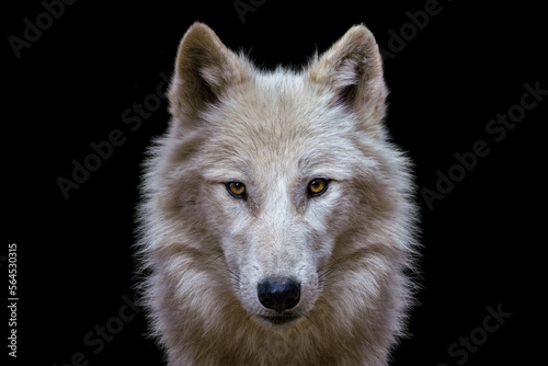 Obraz premium Portrait of arctic wolf isolated on black background. Polar wolf.