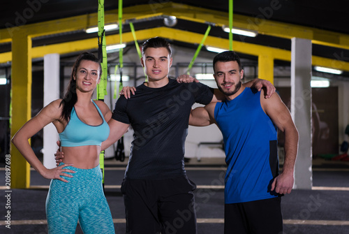 © .shock, Obraz premium portrait of athletes at cross fitness gym