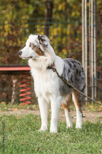 © Eric, Fototapeta premium Portrait of Australian Shepherd Dog in Belgium