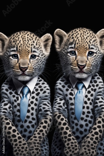 © Razvan, Naklejka premium Portrait of baby leopards in a business suit. Generative AI