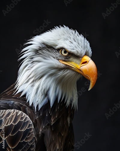 © Eyestetix Studio, Fototapeta premium Portrait of Bald Eagle with glossy feather on the black background AI Generative