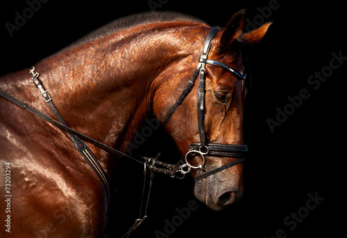 © bagicat, Fototapeta premium Portrait of bay horse Holsteins on a black background